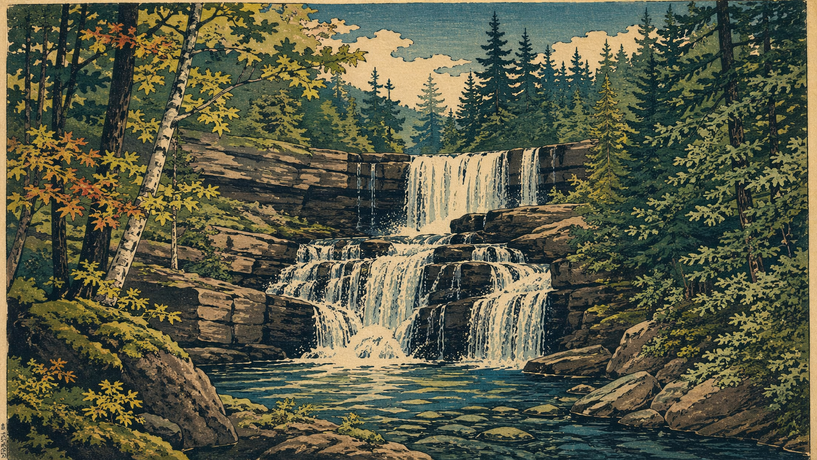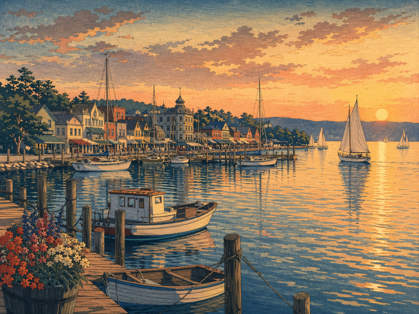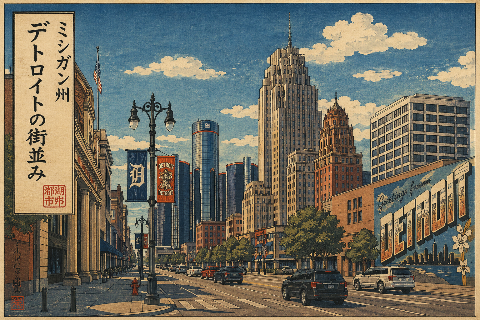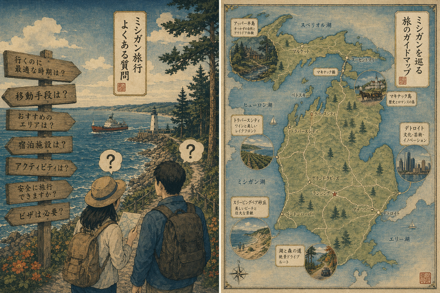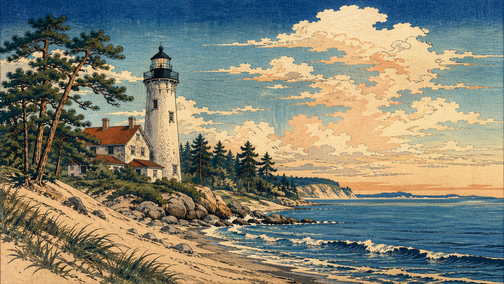 五大湖、デトロイト、マキナック島、砂丘、灯台、森、食、宿。 Michigan.co.jp の日本木版画風イメージ・ギャラリーです。
