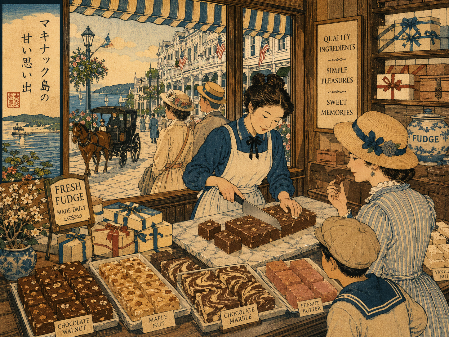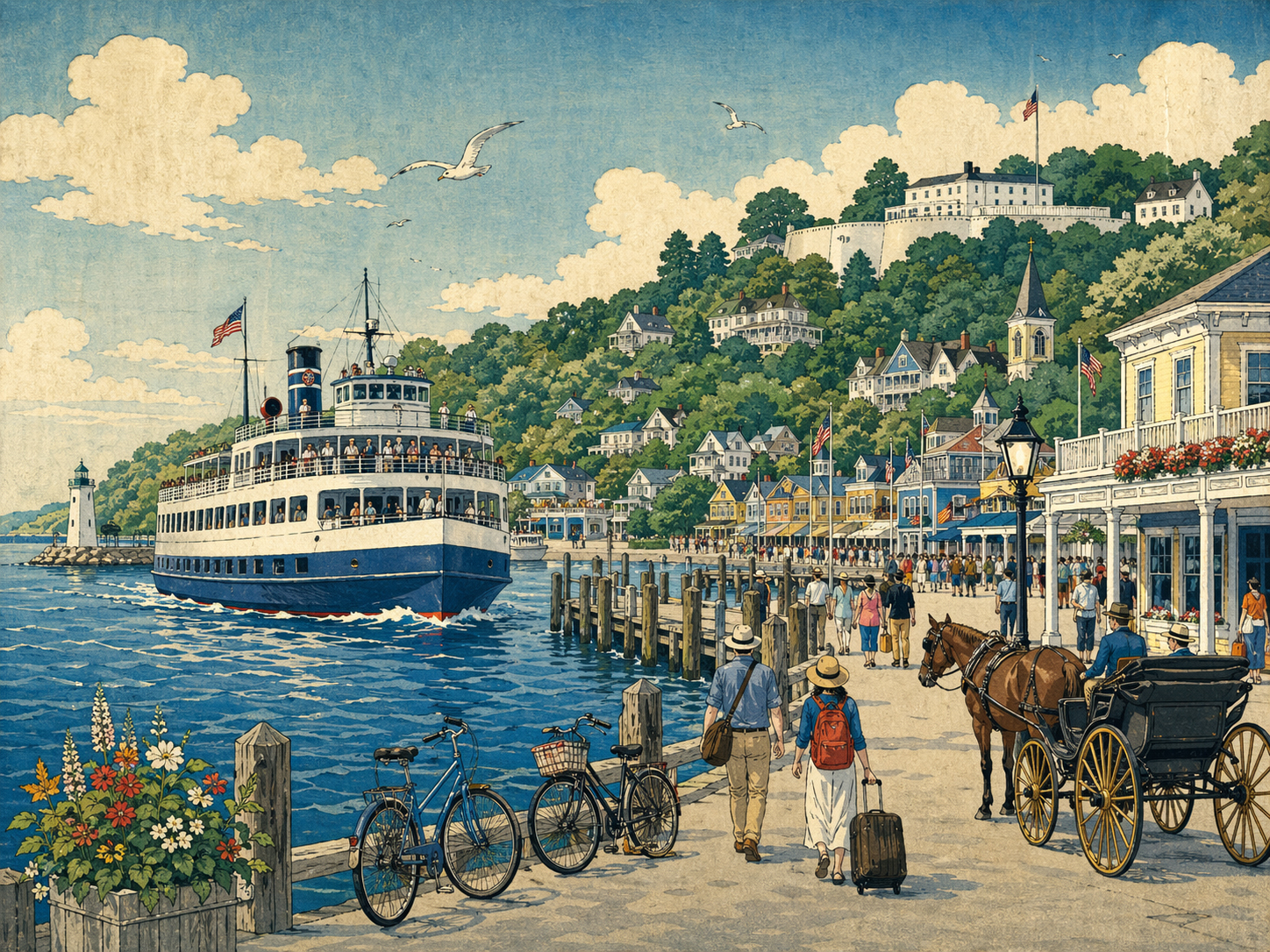 馬車、自転車、Grand Hotel、Main Street、fudge をまとめる島の時間ギャラリー。