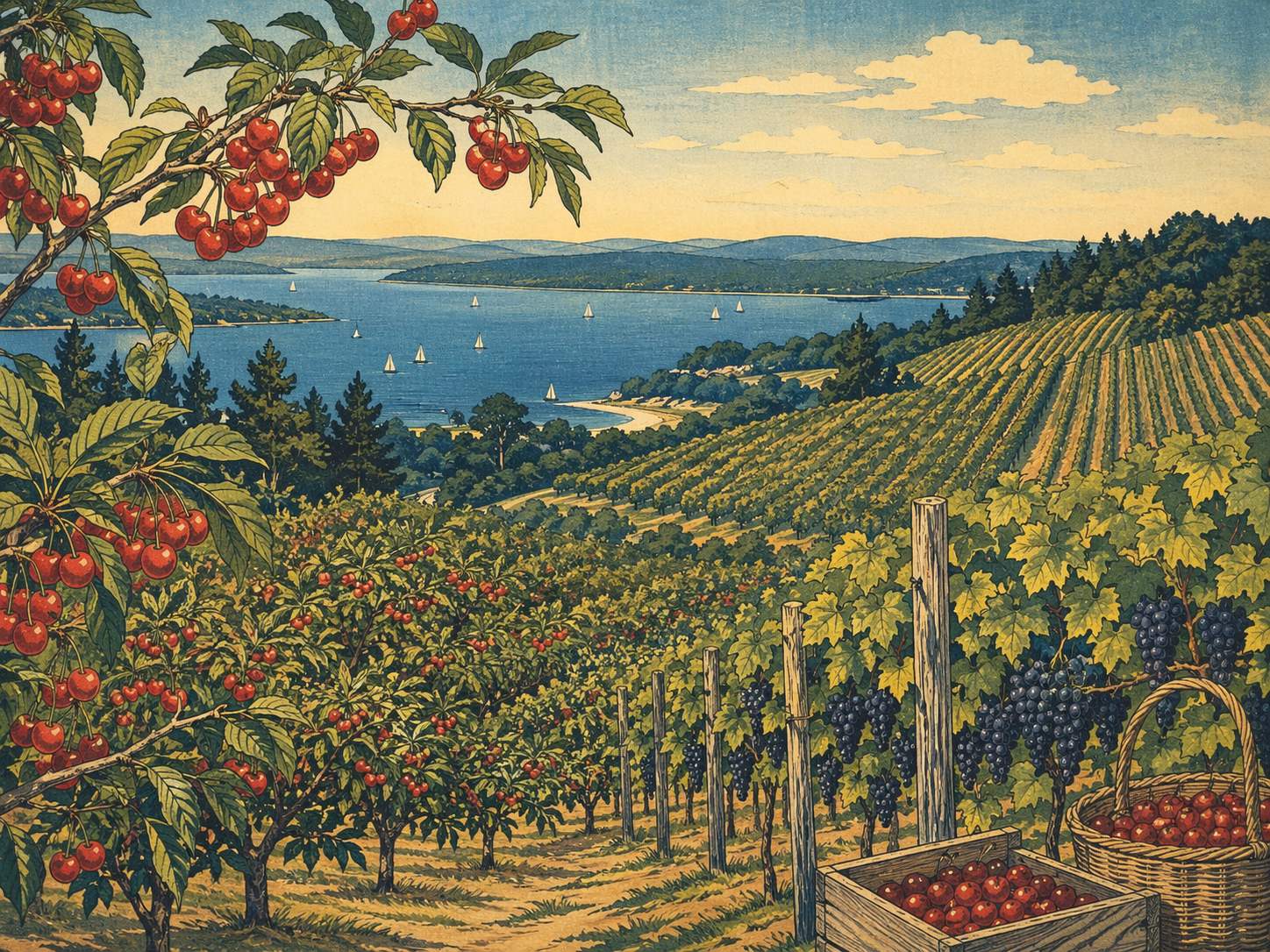 チェリー、湖辺、港、果樹園、ワインカントリーをまとめる北ミシガンの休暇ギャラリー。